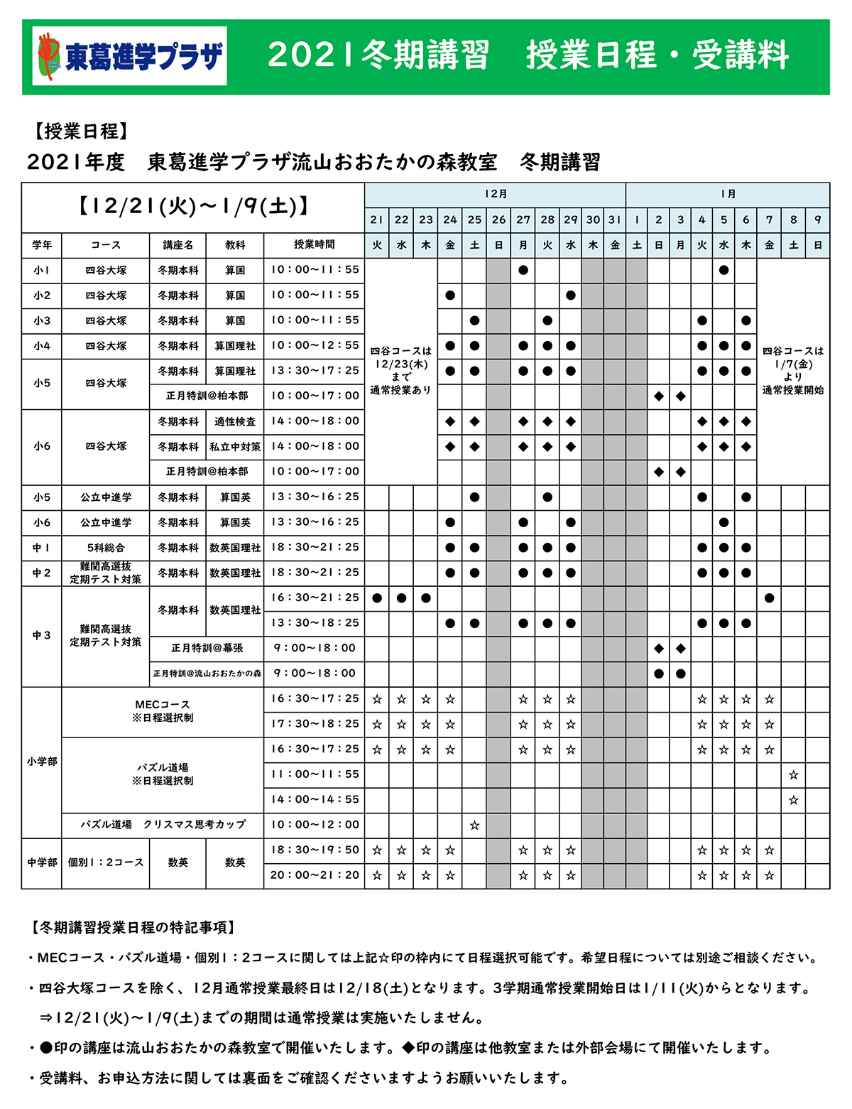 東葛進学プラザの冬期講習
